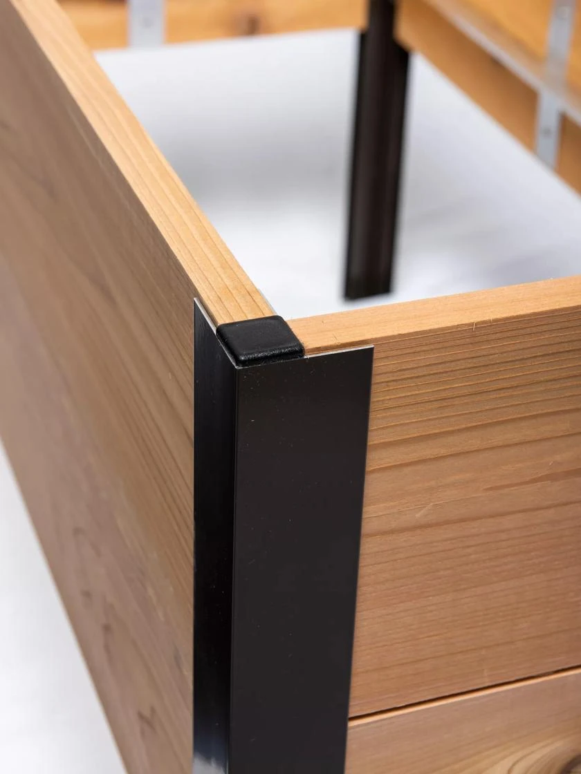 - Rustproof aluminum corners, rot-resistant cedar or cypress sides